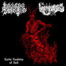 | BeBu-227 REGERE SINISTER (Fin) / MOONFALL (Fin) - Eerie Realms of Hell CD Two Finnish black metal bands with that ancient underground feeling. Originally released 2021 on vinyl format by Zombi Danz Records, we at Bestial Burst are proud to finally bring you a compact disc edition of this magnificent album. Regere Sinister should already be familiar for anyone keeping an eye on our humble little record label: bass heavy and extremely dark obscure cellar metal, with members also known from some of the key releases we have done. Moonfall is another quality project by the Witchcraft temple of Hamina. Whispered "DDTM style" vocals and very atmospheric black-metal-meets-death-doom spiced with keyboards. Just perfect together! Available YouTube song |